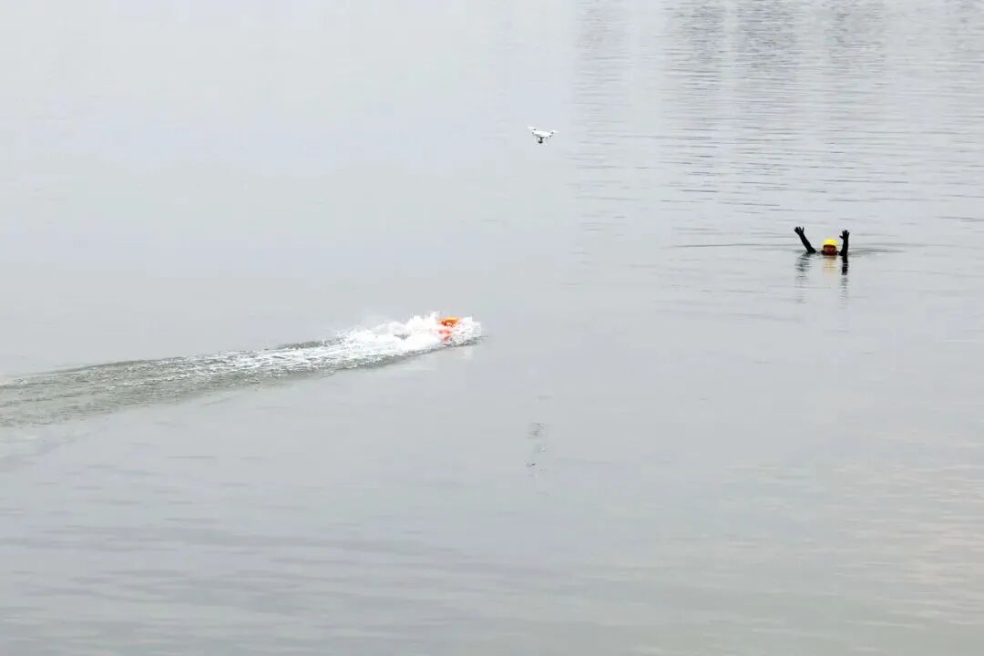 在直播现场,哈威救援的H3智能遥控救生器(U型机器人)、哈威H9救援飞艇、还有一系列先进水域救援装备,如急流水域救援盔、防滑鞋、急流洪水专用救生衣、湿式水域救援服、腰挂式救援抛绳包、水域救援刀、多功能照明灯、救生抛投器、水域救援照明无人机等,一字排开,在主持人引导和消防技师的讲解下,通过直播展示在网友面前。