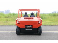 该车搭载增程混动动力系统,配备高性能三电机驱动,响应迅速,动力强劲,采用8×8轮式驱动与内置电驱动螺旋桨推进相结合的设计,具备水陆两栖能力。车辆采用高强度全金属车身设计,配备防翻滚保护装置,确保在复杂地形中的安全性与稳定性。车辆还支持外放电功能,可作为移动电站使用,满足野外作业的电力需求。