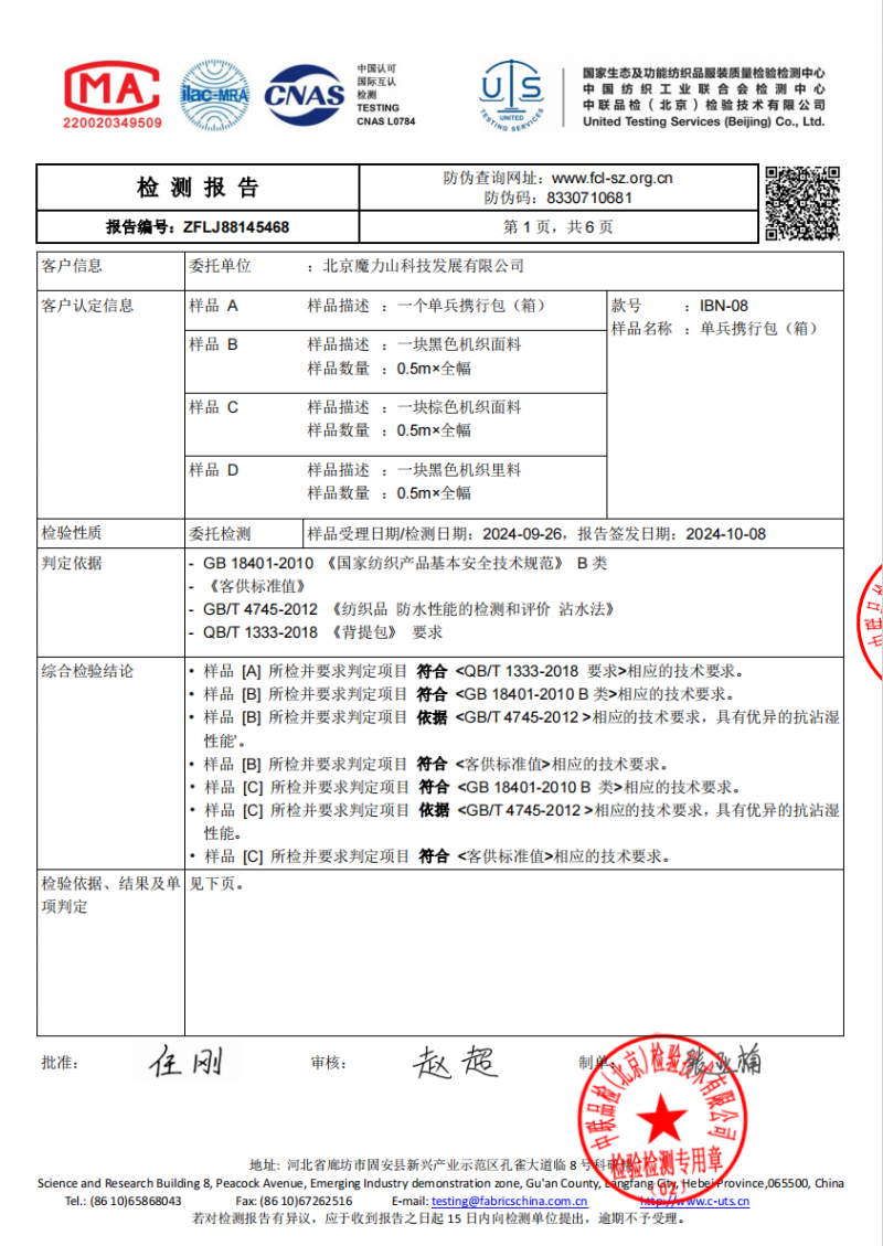 | 发证机构: | 中联品检(北京)检验技术有限公司 | 发证时间 : | 2024-10-08 |