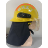 1、头盔适用于灭火救援时保护消防员头部安全,头盔结构为半盔式,头盔由帽壳、缓冲层、舒适衬垫、面罩、披肩、照明灯固定滑轨、照明灯等组成。