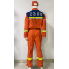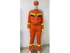 1.服装面料:采用单层织物,为原液染色芳纶、氨纶、阻燃粘胶纤维等交织而成的双重组织;具备防静电、阻燃、耐磨、轻便、柔软、弹性,外层拒水防油、内层吸湿等性能,单位面积质量(桔红色)207g/㎡,单位面积质量(火焰蓝)208g/㎡ 。