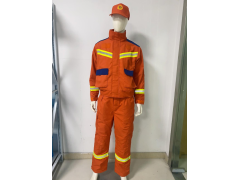 2.防护层材料:原液染色芳纶纤维,具有防静电、阻燃、耐磨、轻便等性能,单位面积质量(桔红色)200g/㎡,单位面积质量(火焰蓝)209g/㎡