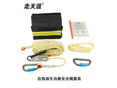 本绳索套装主要用于消防员自救和逃生,由安全绳、安全钩、下降器、连接扁带、阻燃绳包、排绳器等部件组成。