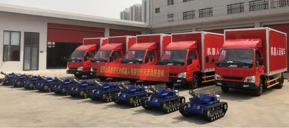 此次交付的灭火机器人适用于易燃易爆、有毒有害、易坍塌的化工、油库、大跨区厂房、罐区等高危场所,进行灭火、探测、侦察等作业。