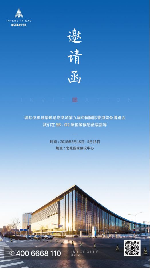 2018年5月15日-18日,第九届中国国际警用装备博览会即将在北京国家会议中心展开,城际快机与您相约5B-O2展位!诚邀广大合作伙伴届时莅临参观指导!