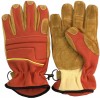 此款消防员抢险救援防护手套采用3D立体式设计、具有极强的立体感效果,手掌指尖采用一片式翻转手指背,同时手掌带减震海绵,整个手套颜色为橘红色和黄色,手套材质为牛头层皮和芳纶针织布,执行GA633-2006《消防员抢险救援服装》标准。