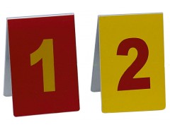 物证牌的形态是“人”形支架,支架的两个侧面分别印刷1、2、3、…….、28、29、30等数字,一个侧面是黄底红字,另一个侧面是红底黄字。