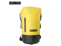 抗磨尼⻰布,环保TPU双肩背包,⾼周波压合,坚固耐磨;袋⼝卷边防⽔设计,⽓密防⽔效果优良。防⽔拉链外仓,⽅便使⽤。轻量化,适合⽔上运动项⽬使⽤。