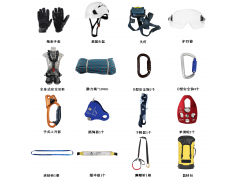 用于辅助救援人员进行攀爬以及搭建救援通道抢救和运送伤员。包括绳索手套、山岳救援头盔、头灯、护目镜、全身式安全吊带、安全绳、安全钩、上升器、抓绳器、下降器、滑轮、连接带、缓冲器等