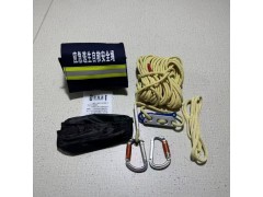 2、由多功能绳包、8毫米安全绳、轻型安全钩、下降器、中空连接扁绳、排绳器组成,在灭火、抢险救援作业中用于自救和救人的绳索。
