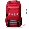 功能:储备应急物资,多方位防水反光夜光,;应急包设计应急光线指引系统;正面四条25mm醒目双色反光夜光条,方便外部光线较暗时能迅速确定应急包位置,中间可以根据需求印字和LOGO;左右两侧双色反光条和紧急联系卡放置位,网格侧兜;防水反光级拉链;内部产品分袋放置,有序摆放,方便找取;双背带设计双色反光条;胸带插件设计有求救口哨,方便实用。