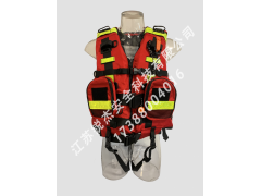 5.活饵快卸系统:环绕胸部腰带一条,宽5cm的尼龙织带,使用一组不锈钢日型环及塑钢固定,拉环上配置一根快速牵引绳,可以固定于肩部,不影响救援动作。
