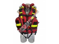 5.活饵快卸系统:环绕胸部腰带一条,宽5cm的尼龙织带,使用一组不锈钢日型环及塑钢固定,拉环上配置一根快速牵引绳,可以固定于肩部,不影响救援动作。