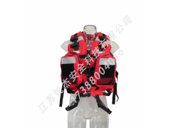 5.活饵快卸系统:环绕胸部腰带一条,宽5cm的尼龙织带,使用一组不锈钢日型环及塑钢固定,拉环上配置一根快速牵引绳,可以固定于肩部,不影响救援动作。