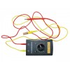 红线插入高压插孔,黄线插入接地插孔,黄色地锤放置在地面上(非绝缘地面)、或放置在一块静电膜上(绝缘地面)。向右转动开关,左侧红色指示灯亮起,此时黄色地锤和红色电极笔之间输出高压静电。